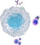 CD19 wird in jedem Stadium der B-Zell-Linie exprimiert und findet sich auch auf Plasmablasten und einigen Plasmazellen.1,2 CD20 wird auf AQP4-lgG-produzierenden Plasmablasten und Plasmazellen nicht exprimiert. Daher haben Therapien, die auf CD20 abzielen, möglicherweise keine direkte depletierende Wirkung auf diese Zellpopulationen.2
