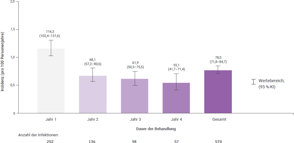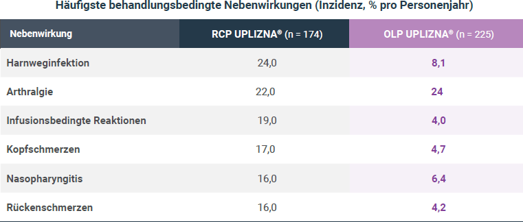 Inzidenz von Infektionen bei Langzeitbehandlung mit UPLIZNA®