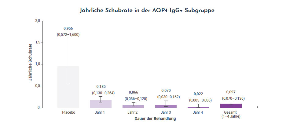aDer Wert ergibt sich aus der AAR unter UPLIZNA® nach 4 Jahren (0,022) geteilt durch die AAR unter Placebo (0,956) in Prozent, abgezogen von 100 %.